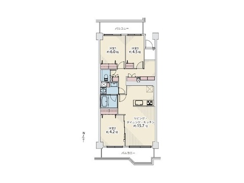| バルコニー面積 | 16.64㎡ | 主要採光面 | 南 |