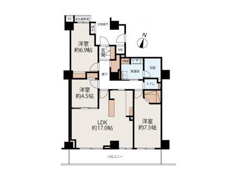 | バルコニー面積 | 13㎡ | 主要採光面 | 南東 |
