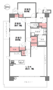 | バルコニー面積 | 23.08㎡ | 主要採光面 | 南東 |