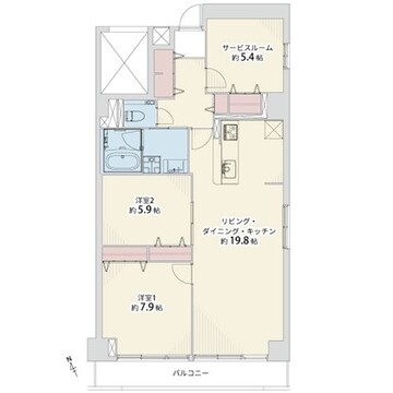 | バルコニー面積 | 8.7㎡ | 主要採光面 | 南西 |