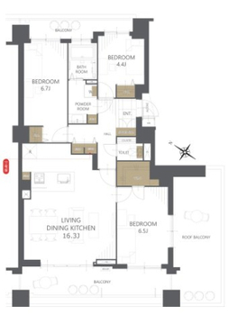 | 専有面積 | 76.55㎡ | 所在階/階建 | 15階/地上15階 |