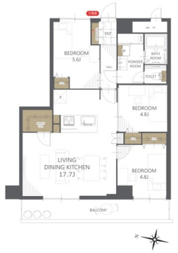 | バルコニー面積 | 10.72㎡ | 主要採光面 | 南西 |